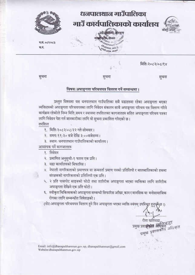 अपाङ्ग्गता परिचयपत्र वितरण गर्ने सम्बन्धमा सूचना !!!