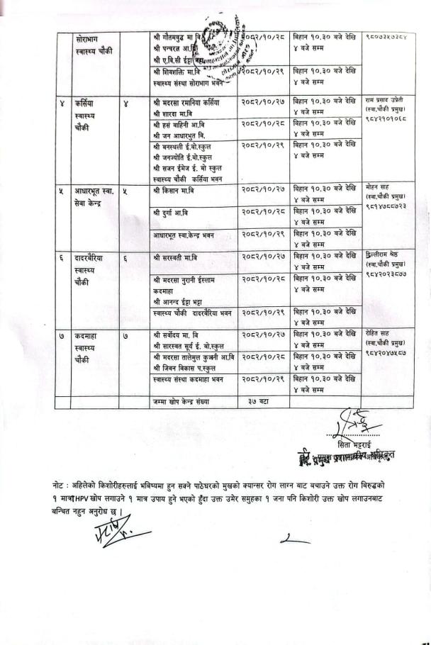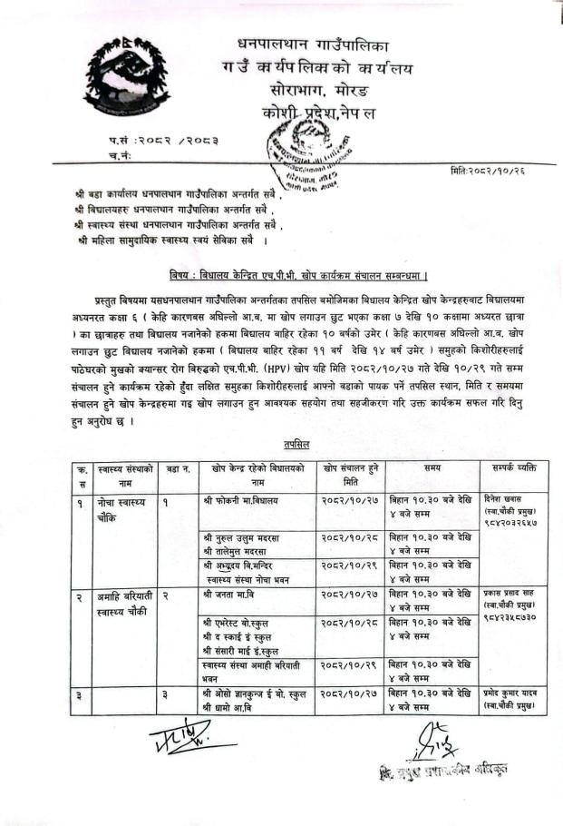 बिधालय केन्द्रित एच.पी.भी. खोप कार्यक्रम संचालन सम्बन्धमा सूचना!!!
