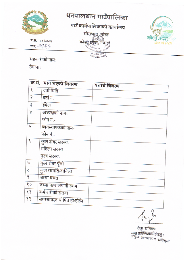 धनपालथान गाउँपालिका र वडा कार्यालय अन्तर्गत कर्मचारीका प्यान नम्वर विवरण सम्बन्धमा