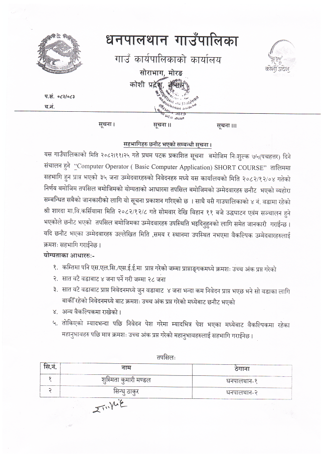 सहभागिहरु छनौट भएको सम्बन्धी सूचना!!!
