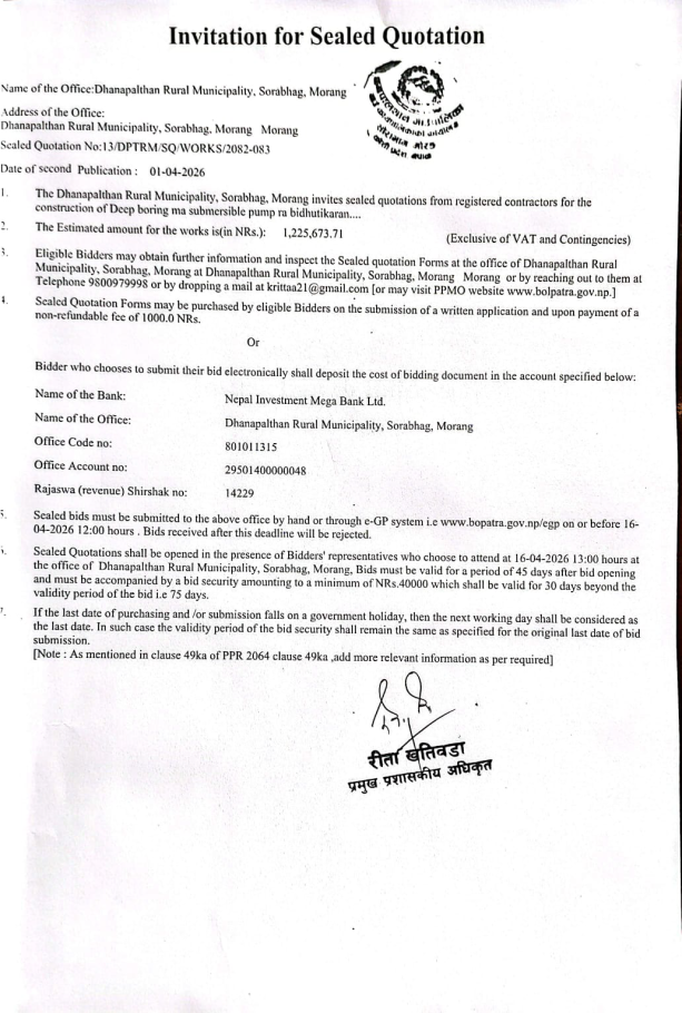 सार्वजनिक खरिद/बोलपत्र सूचना
