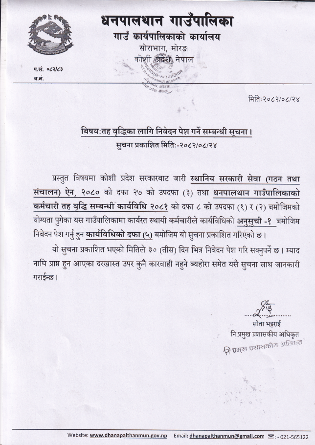 तह वृद्धिका लागि निवेदन पेश गर्ने सम्बन्धी सूचना!!!