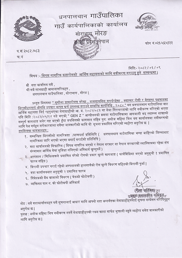 "कृषि, शिक्षा, स्वास्थय उन्नति, पूर्वाधार विकास सहित धनपालथानको समुन्नति "