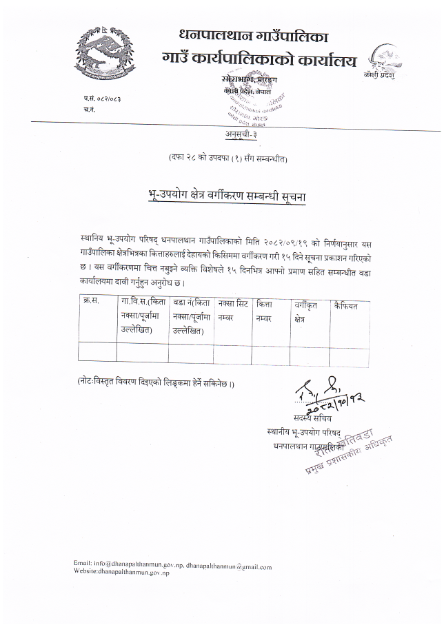 भू-उपयोग क्षेत्र वर्गीकरण सम्बन्धी सूचना!!!