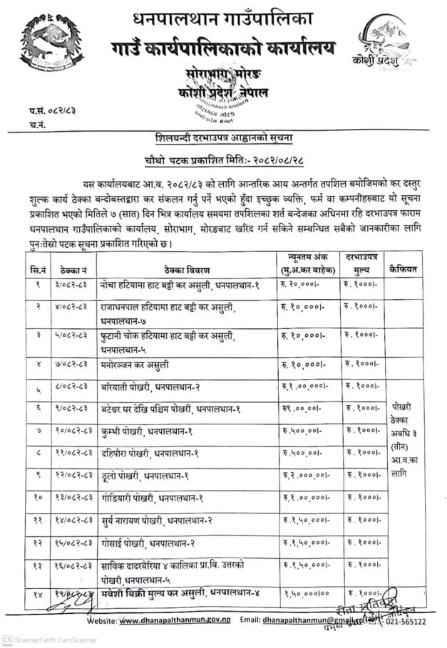 शिलबन्दी दरभाउपत्र आह्वानको सूचना