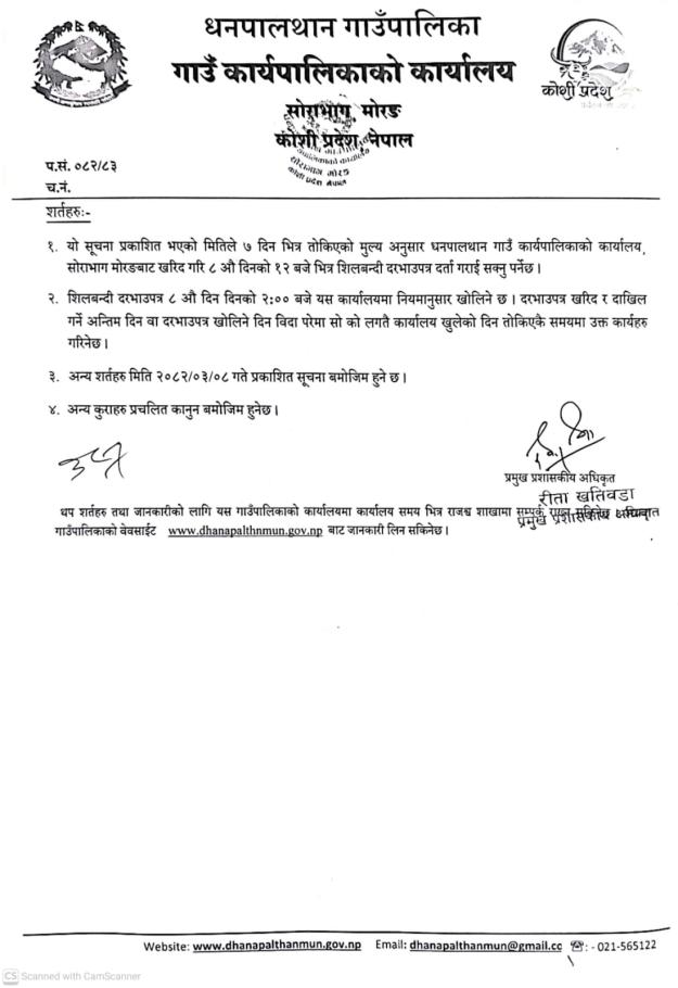 » शिलबन्दी दरभाउपत्र आह्वानको सूचना