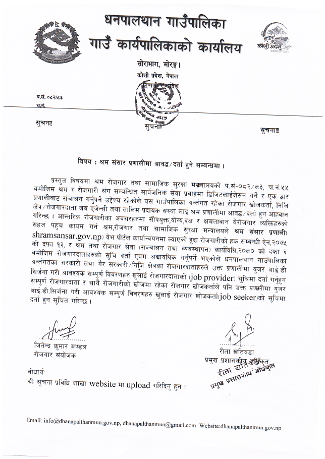 श्रम संसार प्रणालीमा आवद्ध/दर्ता हुने सम्बन्धमा सूचना!!!