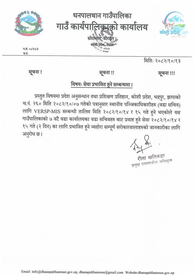 सेवा प्रभावित हुने सम्बन्धमा सूचना!!!