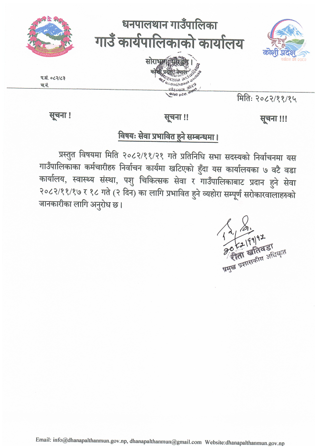सेवा प्रभावित हुने सम्बन्धमा सूचना!!