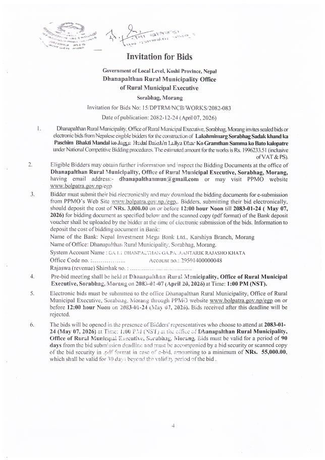 सार्वजनिक खरिद/बोलपत्र सूचना
