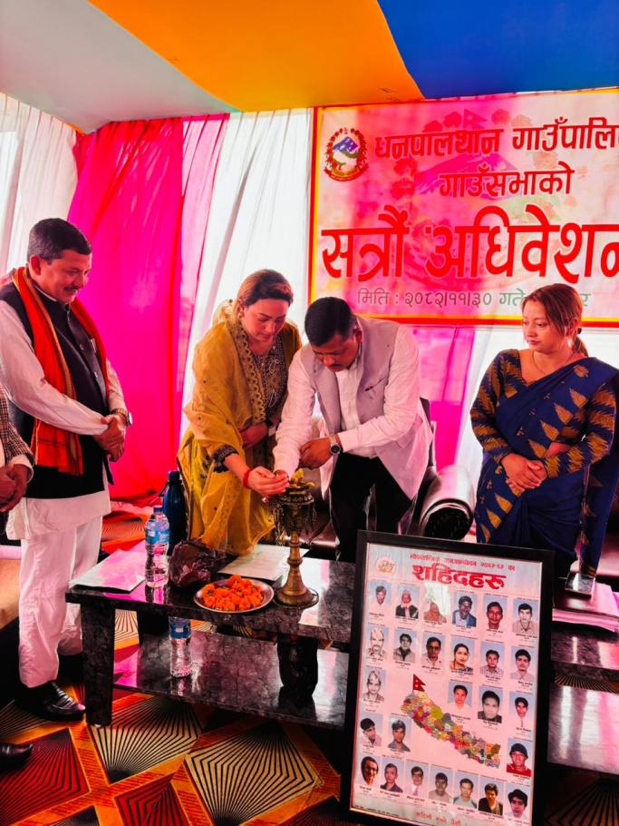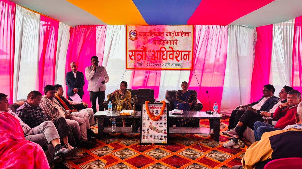 आज धनपालथान गाउँपालिकाको गाउँसभाको सत्रौँ अधिवेशन सफलतापूर्वक सम्पन्न भयो। स्थानीय विकास, योजना तथा समृद्ध गाउँ निर्माणका विषयमा महत्वपूर्ण छलफल र निर्णयहरू गरियो। समृद्ध धनपालथान निर्माणका लागि सबैको सहकार्य आवश्यक छ। मिति: २०८२/११/३० गते, शनिबार
